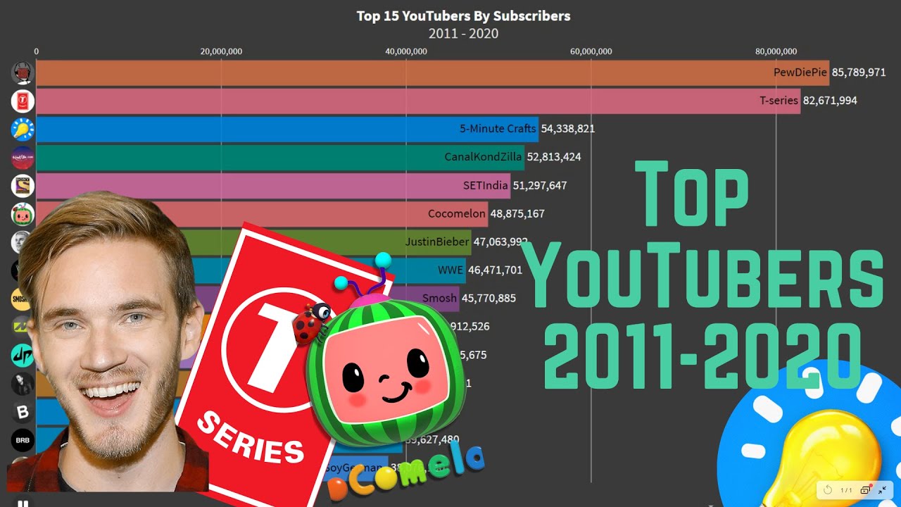 Peringkat 10 Channel YouTube dengan Jumlah Pelanggan Terbanyak di Tahun 2012-2020